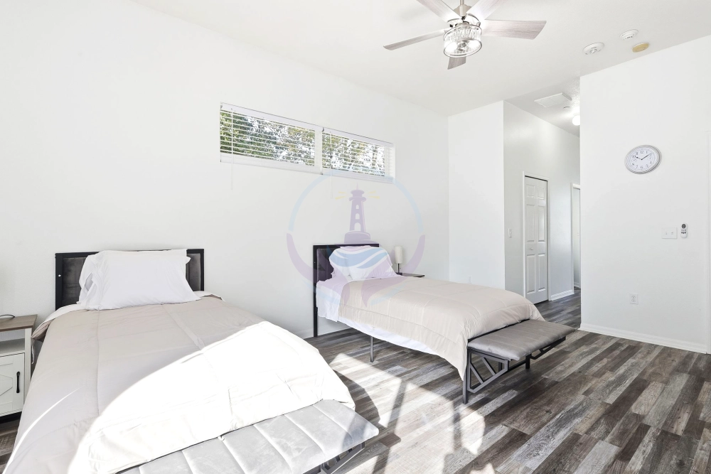 Our private suite includes a spacious bathroom with walk-in shower, Jacuzzi tub, walk-in closet, and the option to accommodate a married couple. Other rooms have convenient shared bathrooms. Residents are encouraged to personalize their space to truly feel at home from day one.